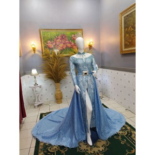 Gaun pengantin gaya tradisional bordir biru langit. Gaun baju pengantin span wedding . Beli gaun pengantin murah warna biru langit terbaru di shopee.